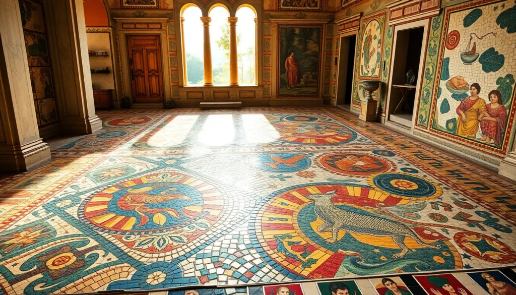 Step into the vibrant world of Roman mosaics, where art meets history in a dazzling display of creativity. These intricate designs, crafted from tiny colored stones and glass, transformed ordinary floors into breathtaking masterpieces. Imagine walking on a piece of history that tells stories of gods, battles, and everyday life—all while your feet get a taste of ancient luxury.